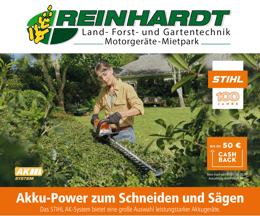 Reinhardt Gartentechnik in Sontra-Breitau und Eschwege steht seit vielen Jahren für Erfahrung, Qualität, Leistung, Freundlichkeit für Landmaschinen, Forsttechnik und Gartentechnik.