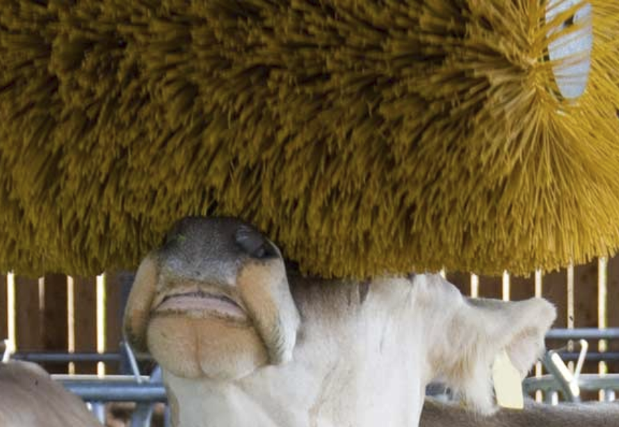 Es ist eine simple, aber wissenschaftlich bestätigte Gleichung: Saubere und entspannte Kühe sind glückliche Kühe. Und Kühe, die sich in ihrer Haut wohlfühlen, sind länger gesund und produzieren mehr Milch. Bis zu zehn Prozent pro Tag kann die Steigerung betragen. Bürstenmassagen leisten einen effektiven Beitrag. Die Kühe sind aktiver, zugleich ruhiger und ausgeglichener.